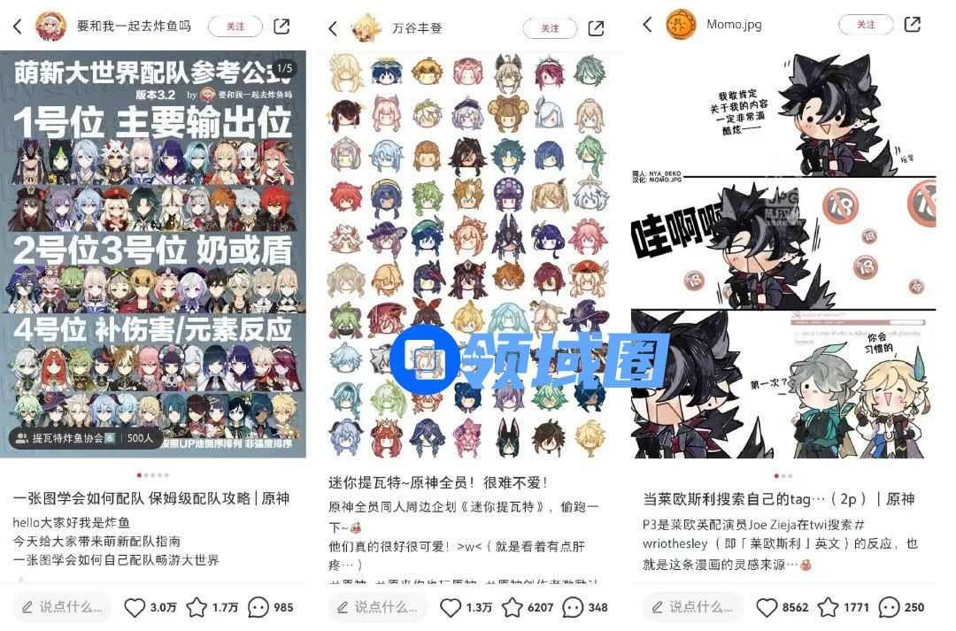 逐渐饱满的游戏内容让用户可以快速在小红书上面找到自己想要的内容。比如需要玩法攻略的用户可以通过搜索角色培养、角色配对、地图探索、宝箱点位等关键词获得对应内容;想看角色相关的用户也可以在推送或者搜索中,轻松找到角色同人图合集、游戏剧情剪辑或整活玩梗等内容。