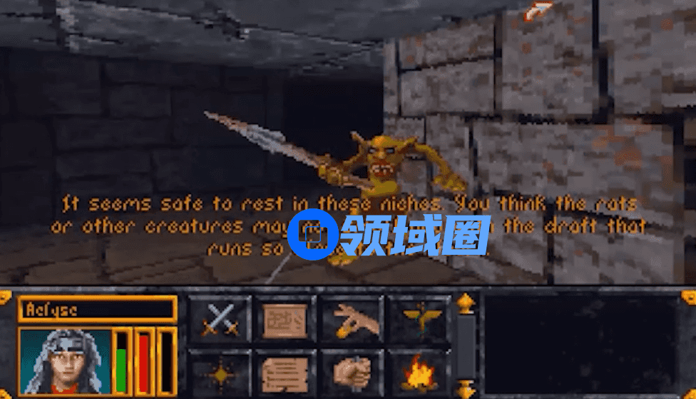 标准题材加上标准展开,这个在今天看来并没有啥吸引力的游戏却在当时引起了轩然大波,领先于时代的3D画面和即时战斗玩法、不受限制的选择、大量可交互的NPC、可游玩的支线任务,以及玩法各异的地牢,都给到了那个时代的玩家一次小小的“上古卷轴震撼”。