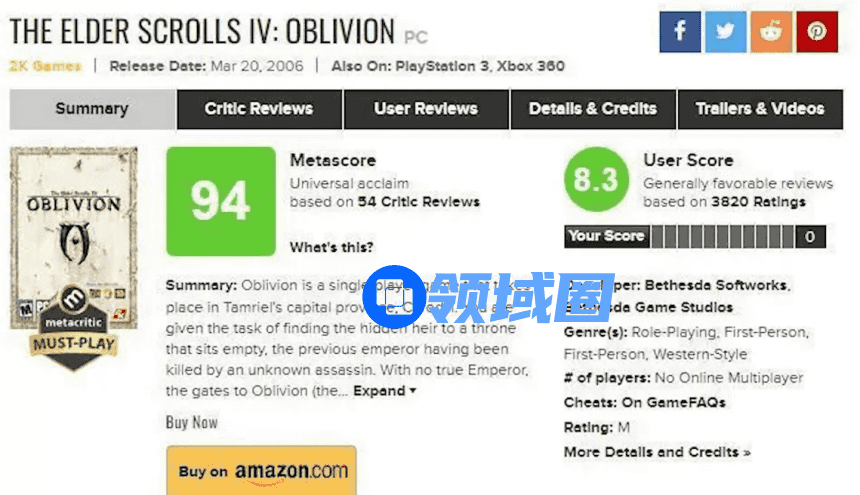 上古卷轴4:湮灭于2006年年初发售,再一次不出意外的,上古卷轴又卖爆了,湮灭在不到一年的时间里光速卖出了超过300万份,M站媒体评分更是超越前作来到了94分,自此,B社凭借上古卷轴系列彻底翻身,正式跻身游戏大厂的行列。