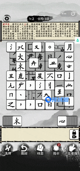 在QQ小游戏中,一款叫做《文字大玩家》的产品也成功冲上了热玩榜TOP3,且其当前位于榜单第3名。该游戏将点击消除玩法和汉字结构进行了融合,在每个关卡当中,游戏会给出一段诗词,玩家需要通过将游戏主界面中的汉字结构进行组合,最终合成诗词中的所有汉字即可过关。
