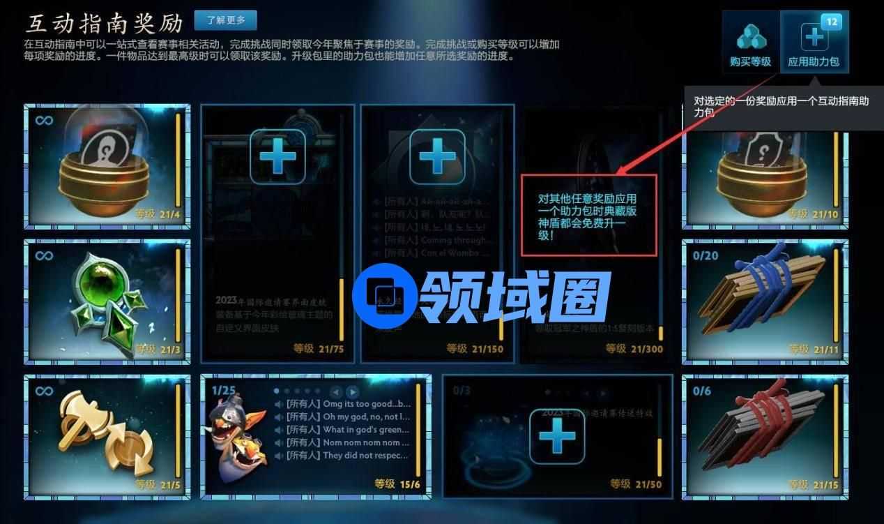 虽然这次TI的互动指南与饰品毫无联系,让许多小伙伴大失所望,但对于有收藏实体冠军盾想法的小伙伴来说,这一定是你与冠军盾距离最近的一次!因为它相较历届的勇士令状来说真的很便宜。