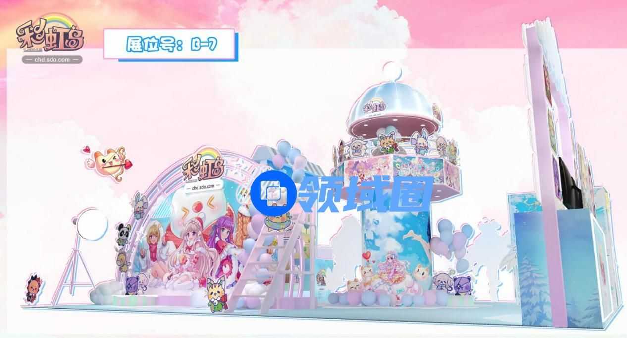 《彩虹岛》这次的展位号为B-7,展台区域跨度较大,周边布景沿用了作品中活力满满的童话美术风格。由顶级中韩画师联合打造最可爱梦幻的游戏画面,一直是《彩虹岛》的看家本领,加上丰富百变的妆容造型、畅快淋漓的战斗系统,让《彩虹岛》荣获2019年、2022年金翎奖“最佳原创网络游戏”奖;2022年获得金手指优秀网络游戏奖;同年还荣获17173“年度热门网游”奖项,深受广大玩家喜爱。如此美轮美奂的布景,即便没有了解过这款游戏,不打卡合照一张都有些说不过去了!