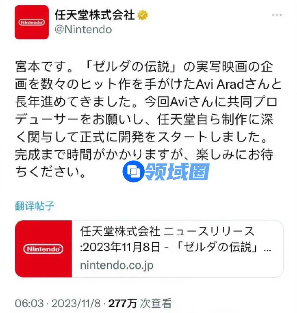 11月8日,任天堂发布了一则声明,吸引了一众粉丝的目光。不过,这次并非游戏新动向,而是电影。