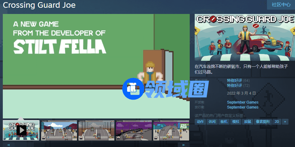 据游戏页面公布的信息,《Crossing Guard Joe》正式上线于2022年3月,在上线一年多的时间里只获得了72个玩家评价(11月7日数据),甚至其中的64个评论都是近期留下的,且从评论内容也不难看出,近期留下评论的玩家大多数都是被游戏主播的视频效果带来的。