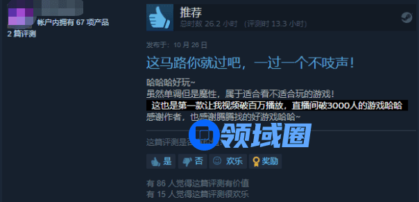 其中还有新人主播现身说法,这款游戏内容魔性、节目效果拉满,但是实际玩法单一,非常容易让人感到单调疲劳,这或许就是为什么许多人愿意蹲在视频前看着其他人玩,却不愿意真正去购买下载这款游戏,实际体验一番。正如这位玩家所言,这款游戏或许就是一款“适合看不适合玩”的游戏。