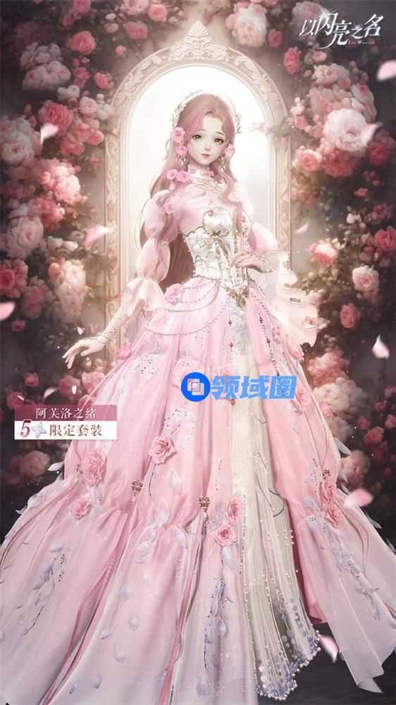 而此次《以闪亮之名》带来的这套五星阿芙洛之绪套装,以粉色为主色调,绽放着浪漫柔美的氛围。裙子上点缀着鲜花和散落的花瓣,仿佛春天的绽放,带来一股温暖的气息。阿芙洛之绪套装的设计兼顾了细节和华丽感,胸前的立体胸衣采用复古卷纹金属材质打造,展现出女神的高贵和华丽。柔和的粉色套装在整体上展现了阿佛洛狄忒女神的温柔和爱的特质,仿佛置身于希腊神话中,沐浴在爱与美丽女神阿佛洛狄忒的光芒之下。