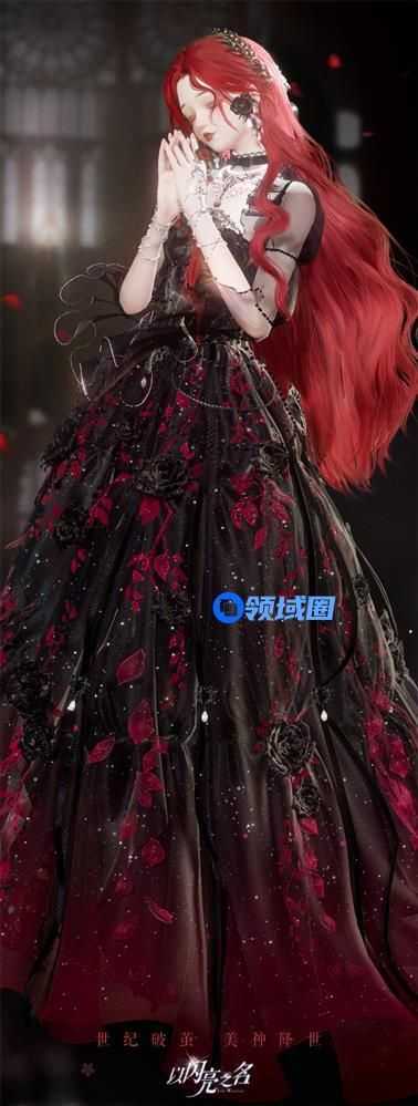 胸前的白色图案呈现蕾丝刺绣的效果,搭配上珍珠和钻石的饰品装饰,更添梦幻的氛围。花朵的立体设计和边光效果,使阿芙洛之绪套装的整体造型更加精致且栩栩如生。