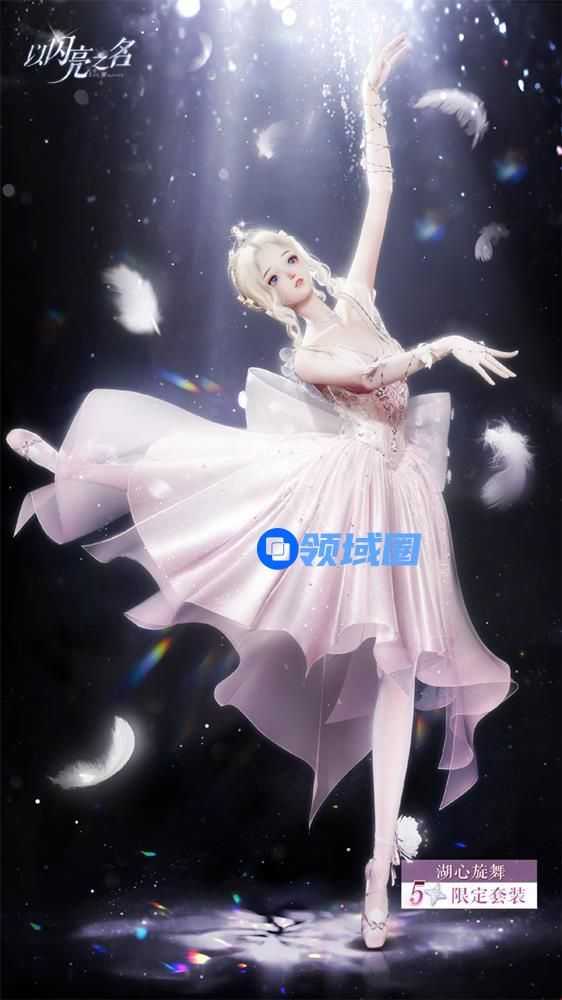 与此同时,此次《以闪亮知名》瑰露祈舞版本带来的另外一套五星套装——「湖心旋舞」也同样十分令人惊喜。湖心旋舞五星套装的灵感源自舞者在花园中起舞的场景,以芍药花朵为主题元素,整体以纯净的白色为基调,呈现出简洁而精致的线条,完美勾勒出化身为舞者的玩家们的优美身姿。
