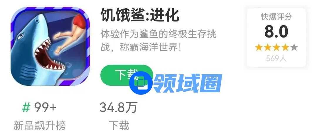 《饥饿鲨:进化》是来自育碧游戏的“饥饿鲨”系列游戏之一,该游戏早在2015年就已上线国内iOS,凭借着极其真实的海底世界刻画,刺激的捕食体验,该游戏一直在国内休闲动作市场拥有一席之地。除了在iOS上,在好游快爆、TapTap上面还分别拿下了8.0和7.2的高分玩家评价。