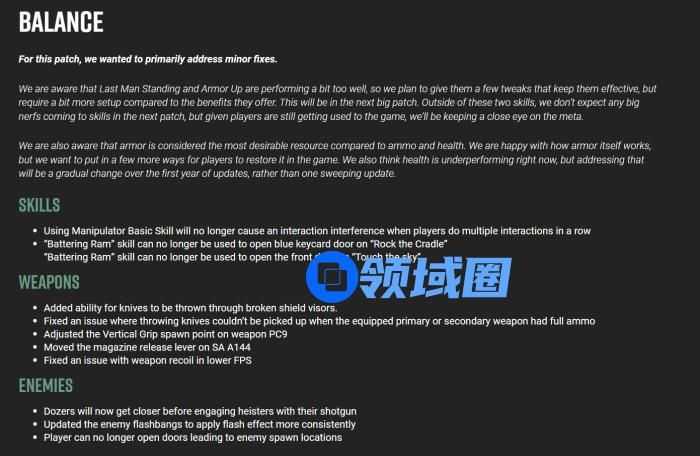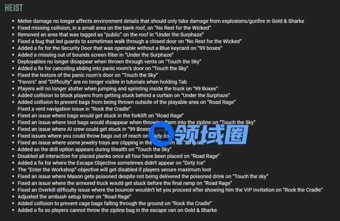 目前的1.01版本拥有2GB(PC版本)的体量,包含了大量的改进,从音频、视觉、平衡到UI、劫案等。