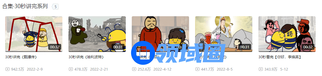 在已经发布的视频当中,觅2频道中热度最高的要数“30s讲完系列”,其中“30秒讲完《甄嬛传》”这支视频是他的B站账号上第一个爆款视频,也是他目前所有作品中播放量最高的视频,如今这只视频仅在B站的播放量就已经接近1000万。