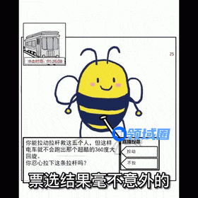大量观众聚在一起玩游戏,就会造成一些很有意思的现象。比如他曾在直播试过的“电车难题”,游戏规则非常简单:在电车铁轨上躺着五个人,玩家只要拉动拉杆就能让电车转向,救下这五个人的性命,不过这样电车就跑不出超酷的360度大回旋了(?)。看起来非常简单的选择游戏,但每轮游戏票选的结果总是……