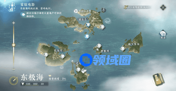 游戏海上区域——东极海开放,包括玩家熟悉的谪仙岛,以及镇海湾、幽冥岛、逍遥门、磐蟹洲等区域一直延伸至奔雷屿,都将开放。新区域场景内会随机落雷,有些区域降雷更是频繁,也呼应了资料片标题“谪仙雷吟”。