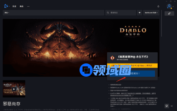 成功登陆后,在游戏列表中找到《暗黑破坏神:不朽》或《暗黑破坏神:永生不朽》(根据前面选择的简/繁体中文而定),点击左侧【立即注册】