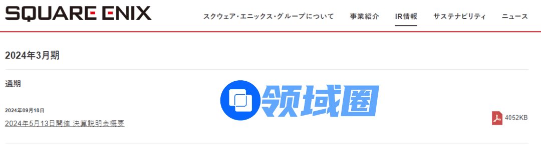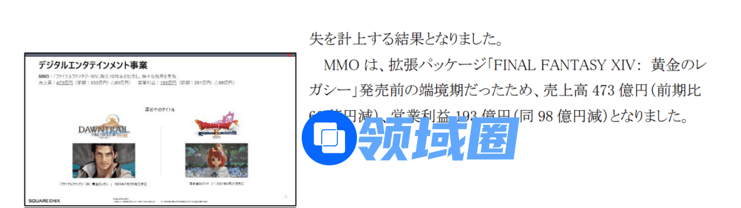 9月18日,SquareEnix发布了5月13日业绩报告会概要。
