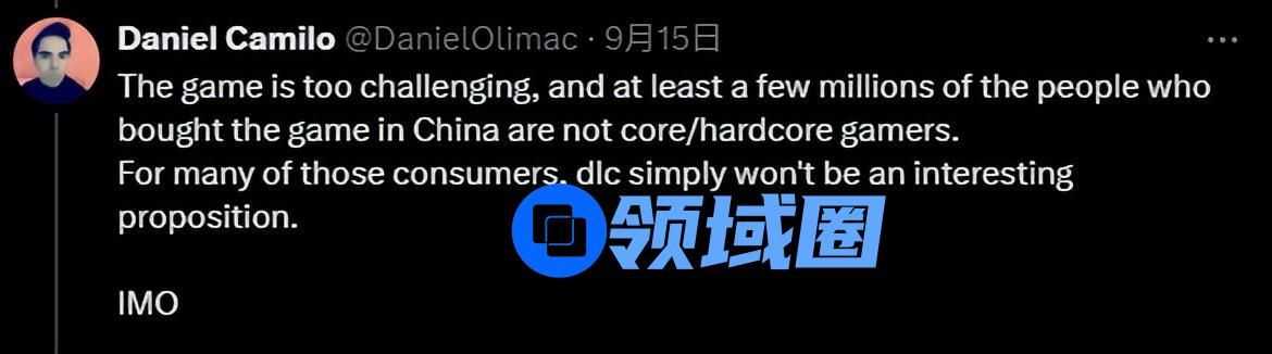 在Daniel Camilo看来,购买《黑神话:悟空》的中国用户中,至少有几百万人算不上“硬核/核心”玩家,所以对于许多消费者来讲,DLC并不具备吸引力。