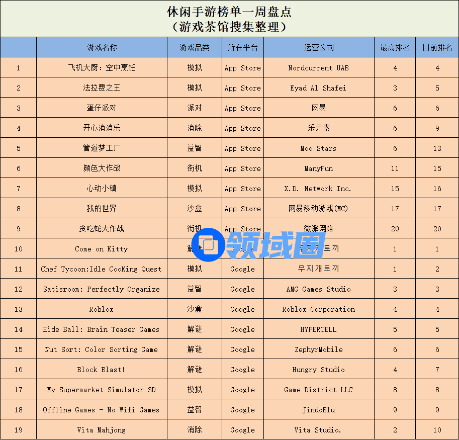 手游方面,在国内的App Store免费游戏榜单中,此前曾经大火过的模拟经营游戏《飞机大厨:空中烹饪》重回App Store免费游戏TOP4,另一款模拟游戏《法拉费之王》紧随其后,位列榜单第5名。同时,休闲肉鸽玩法的《管道梦工厂》本周热度也居高不下,稳稳拿下了免费游戏榜单第13名。