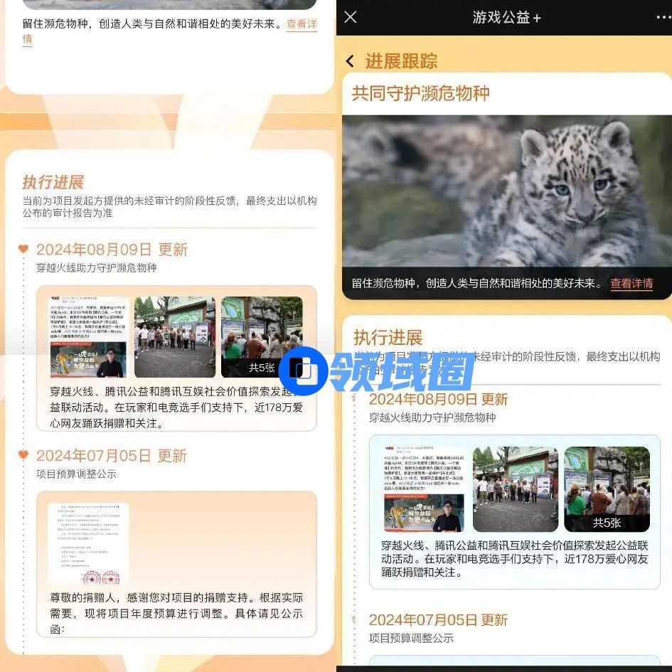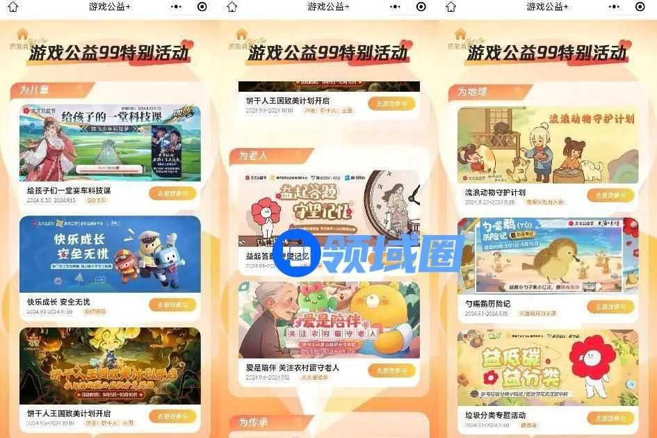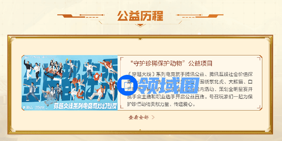 即“游戏公益专区”是“游戏公益+”为了推动公益活动的良性循环,为每一款游戏量身定制的独立公益阵地。玩家进入对应游戏的公益专区后,即可了解与该游戏产品的公益历程、跟踪参与公益项目进展的,或是使用游戏内获得的公益积分兑换联动公益奖励。