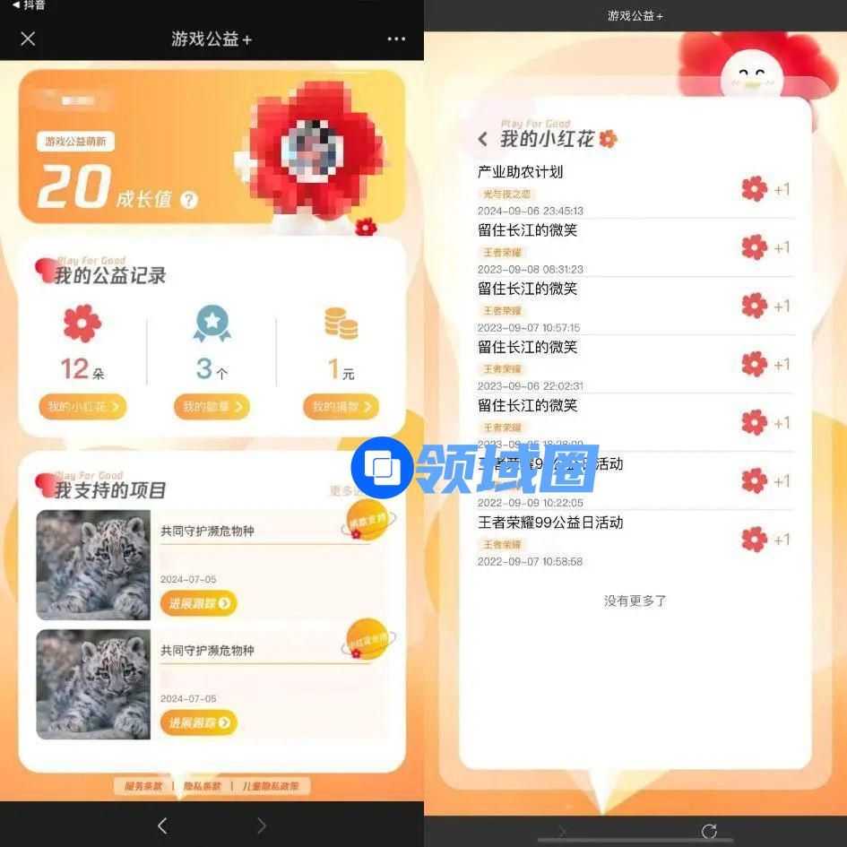 同时,“游戏公益+”还为用户开辟了“公益记录”页面,用户搭建了游戏公益家的成长体系。用户每一次参与公益活动,所获得的小红花、勋章、捐款乃至支持的项目信息都在此一目了然。并且,伴随着公益足迹的延长,用户也会从“游戏公益萌新”一路成长。奉献善意,收获温暖。