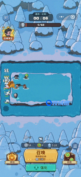 简单来看,该游戏融合了111%最擅长的合成+塔防玩法,玩家可用联机匹配和邀请好友两种途径开启关卡,然后通过召唤、合成英雄的方式,双人合作对抗怪物和Boss,当场上敌人数量超过一定限额或者Boss存活时间过长,则游戏结束进行奖励结算。