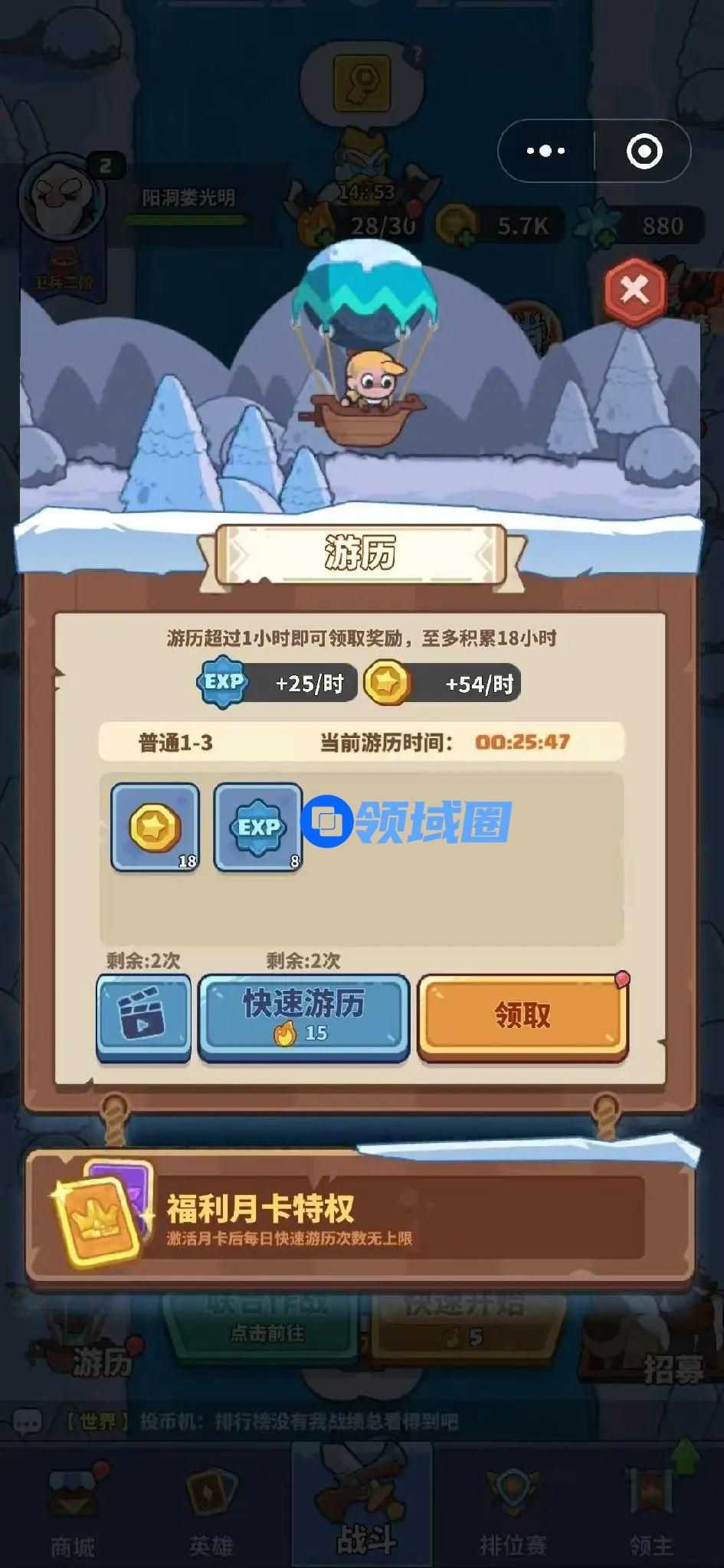在核心塔防玩法之外,该游戏还增加了一个可产生放置奖励的游历模块,满足了部分玩家的放置游戏习惯和需求。
