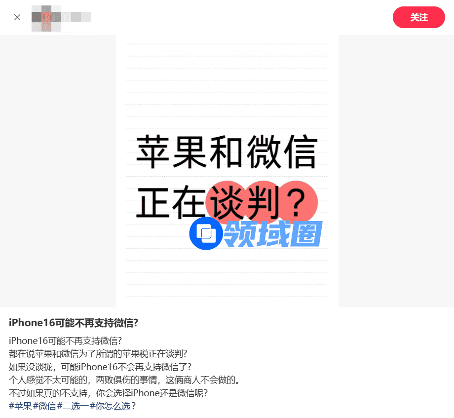 过去一月,腾讯和苹果正因“苹果税”出现分歧,以至于出现了“iPhone 16不支持微信”的传言,网上更是长时间在讨论“要苹果还是微信?”的讨论。