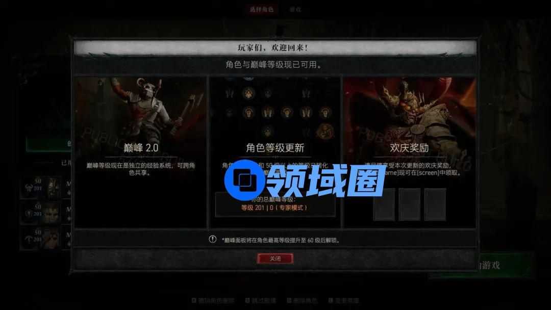 首先,等级巅峰系统几乎重做,再次向前辈暗黑3致敬。从原有50级角色等级加50级巅峰等级一并计算成满级100级,改成了分开独立计算。玩家现在的最高等级为60级,60级后直接解锁巅峰等级,并获得201点巅峰点,之后玩家可以进行巅峰升级,最高上限300级。惊不惊喜意不意外,兜兜转转一圈,又改回了暗黑3 的“经典设计”。