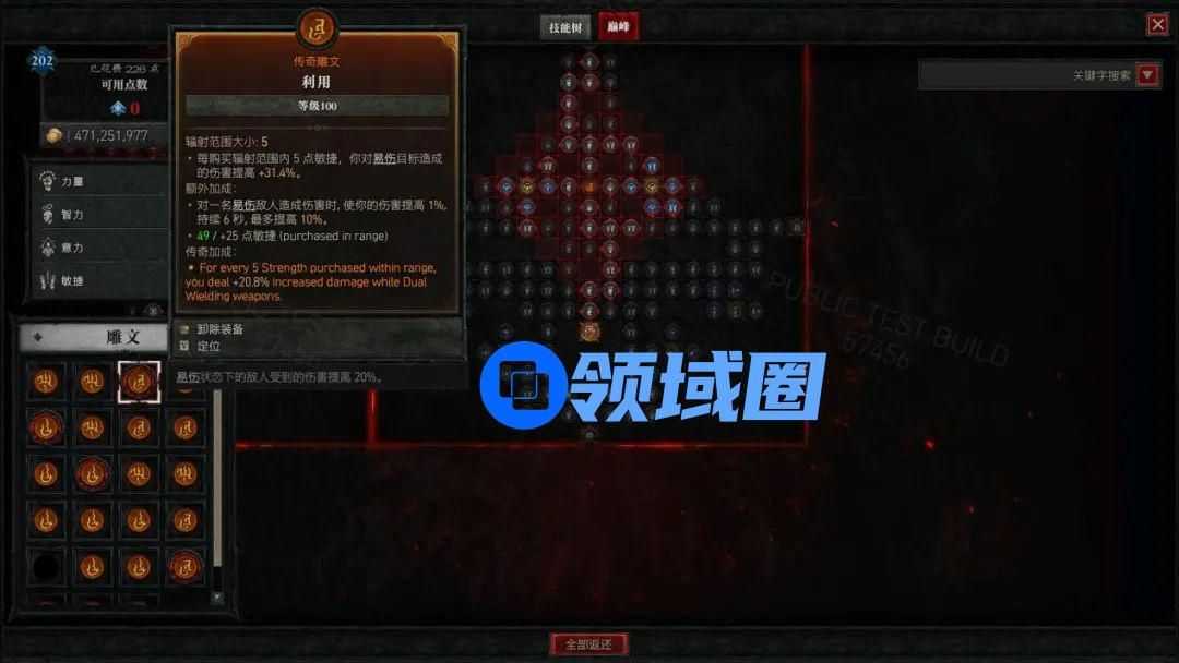 与之相对的,每个职业获得一个核心被动以及5个额外被动技能,并额外多10点技能点。巅峰盘最多只能设置4个(老年人玩家好评如潮,表示终于不用对着点了),雕文等级上限改为100级,且45级之后会再次扩大增益范围。