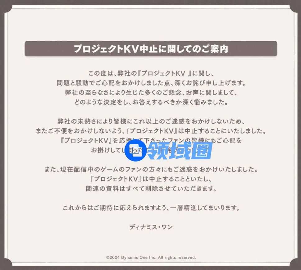 近日,备受关注的二次元游戏《Project KV》突然宣布终止开发工作,并且将会删除《Project KV》的全部相关素材。
