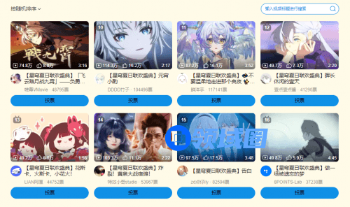 其次便是更为公平的同人赛事机制。新老人之间的粉丝差距问题在比赛中难以避免,而为了减小粉丝量带来的影响以及新人影响力有限的问题,这次联欢盛典2.0中的作品释出后将按粉丝量从低到高,分组释放,组内随机播放的设定则进一步削弱了粉丝基础带来的影响。而在观众投票这,作品随机展示的设定让新人也能够有更多被看到的机会。种种调整,确实能看到主办方的思虑。