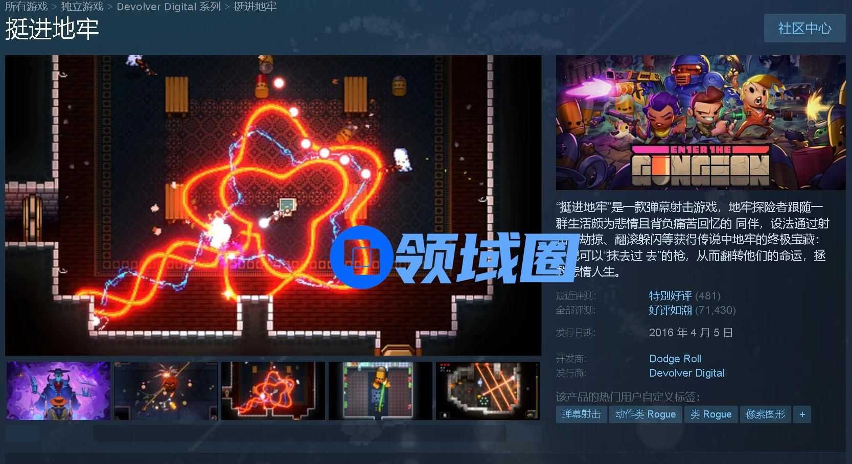 《挺进地牢》是一款早在2015年便登陆Steam的Roguelike游戏,凭借游戏极佳的枪械手感,敌人富有特色与挑战性的弹幕,“枪弹化”的场景与敌人,有趣的交互逻辑,以及游戏中丰富的隐藏要素。时至今日,已收获七万多条评价,好评率高达95%。