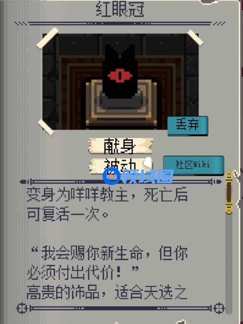 第二个特殊道具红眼冠,则可以在咩咩教主阵亡时复活,大大降低了游戏难度。