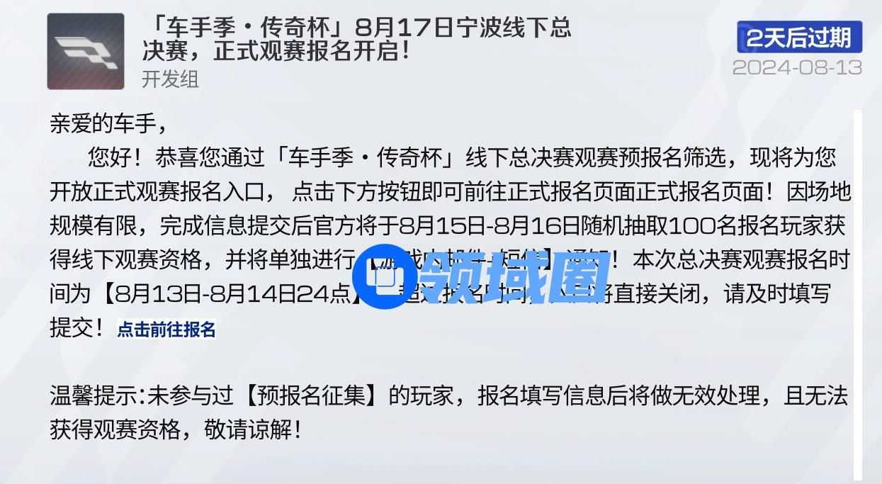 「车手季▪传奇杯」全国总决赛的观赛报名通道已经开启,赛事官方也邀请参与过预报名征集的车手于8月17日前往宁波国际赛车场,共同见证本年度全国冠军的诞生。这不仅是一场赛车比赛,更是一场关于梦想、速度与激情的狂欢。