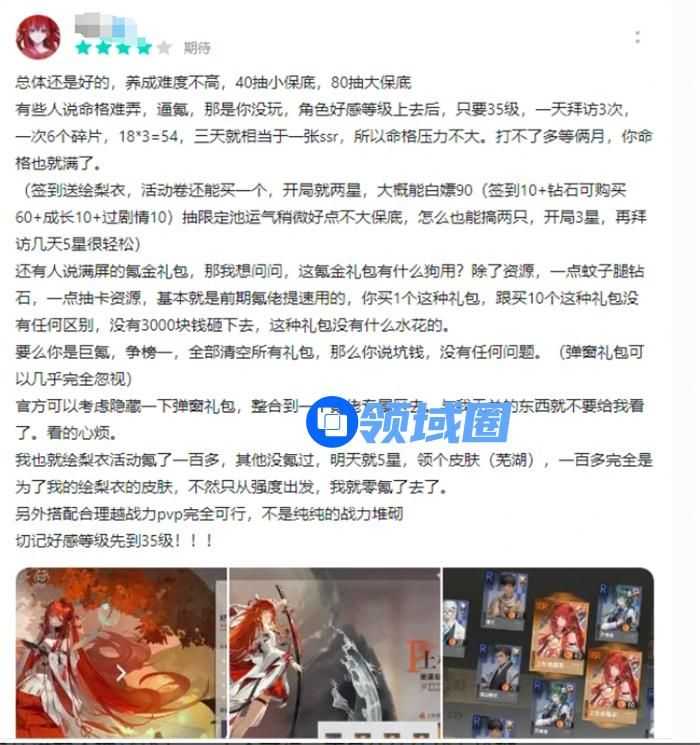 这并非我的个人感受,事实上,在TapTap上,有众多玩家给出了同样的评价,甚至有人精细的计算出,SSR的出货率超过了5%,十连二橙甚至三橙,也并不算什么稀罕事儿。