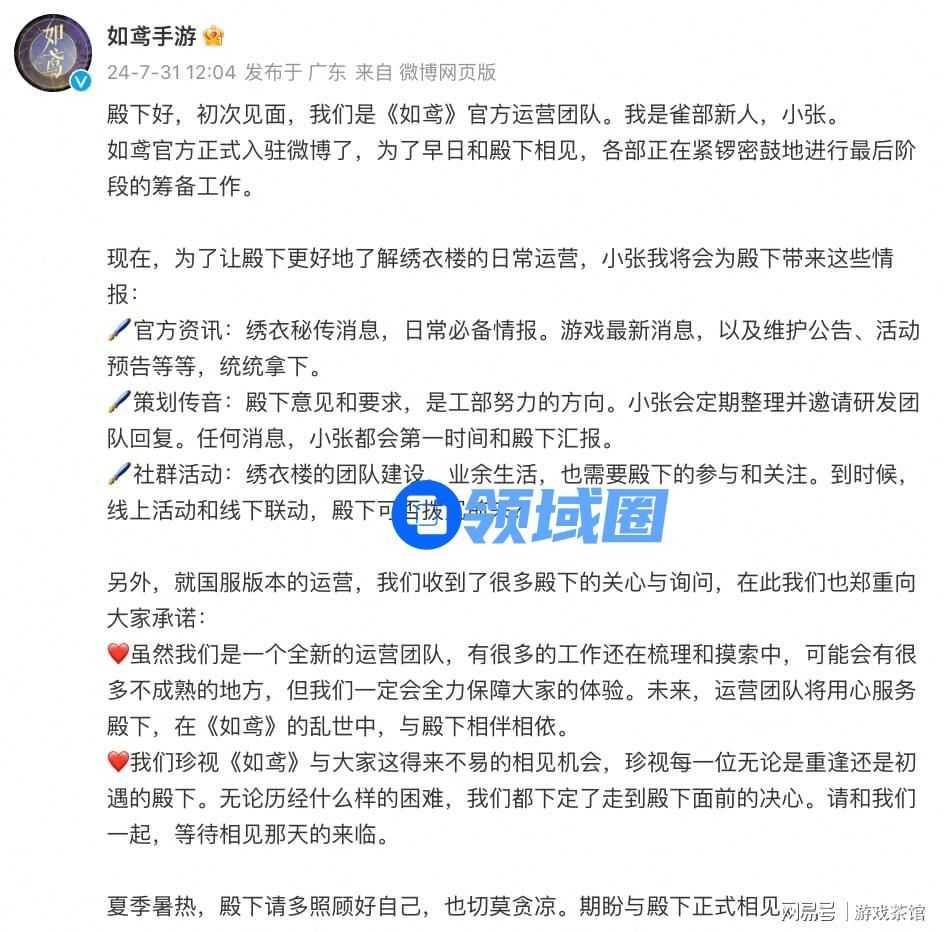 游戏官方在最新的公告中透露,《如鸢》由一个全新的运营团队独立运营管理,他们将全情投入确保为国服玩家提供高品质的游戏体验。