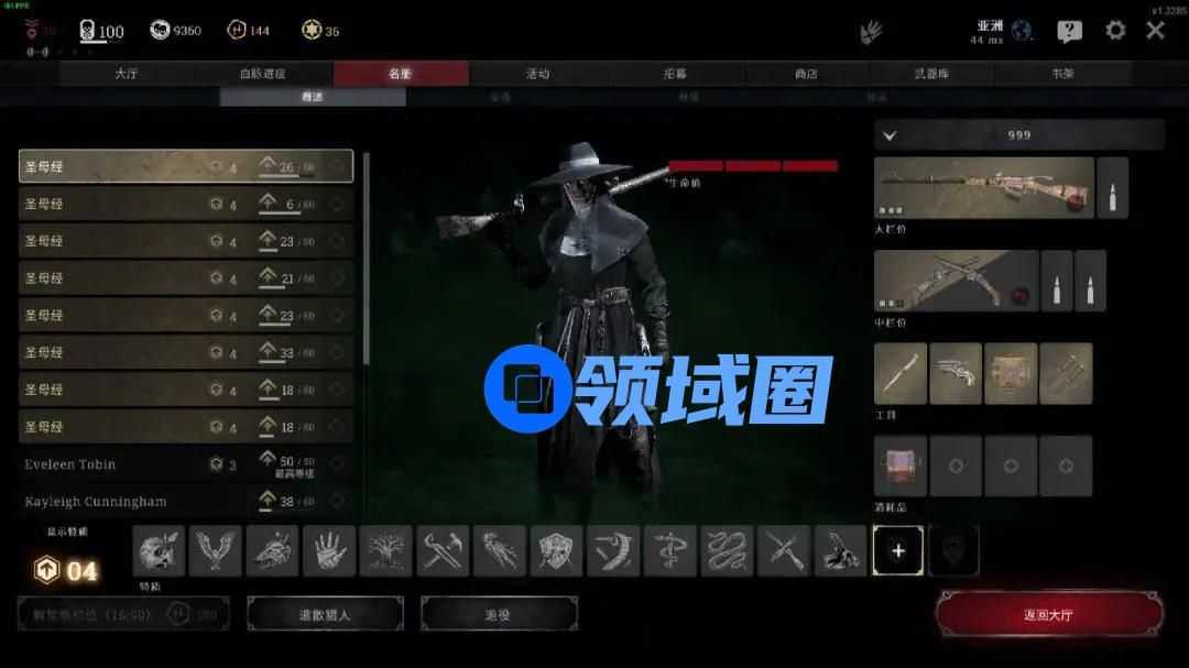 除了场景设计沉浸感十足之外,《猎杀:对决》的人物外形设计也非常出彩。19世纪末维多利亚时期中常见的西部牛仔、枪手、瘟疫医生等角色悉数登场。为了契合西部背景以及魔幻风的设定,猎人们的设计并不是单纯的西部牛仔风,还融合了voodoo、cult元素的19世纪风格,主色调也几乎是偏灰暗淡,装束上有着大量皮革负重带、外翻领、动物皮毛、麻布料子的设计。即便是带着礼帽的绅士,亦或是宽沿牛仔帽的牛仔,都有一种融入场景的风尘感,丝毫不觉违和。
