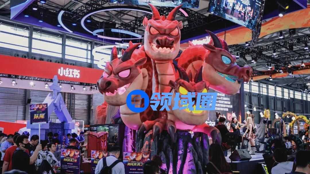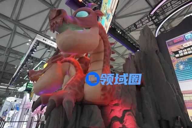 展馆内部,除了一些耳熟能详的老熟人展台,最吸引我注意力的居然不是那些大厂出品,而是在展厅的侧边展台,有四头接近6m高的大魔龙雕塑,一个脑袋都快有真人大小了,四个颜色龇牙咧嘴,虽然是Q版形象,但实实在在的大尺寸摆在那还是怪唬人的。