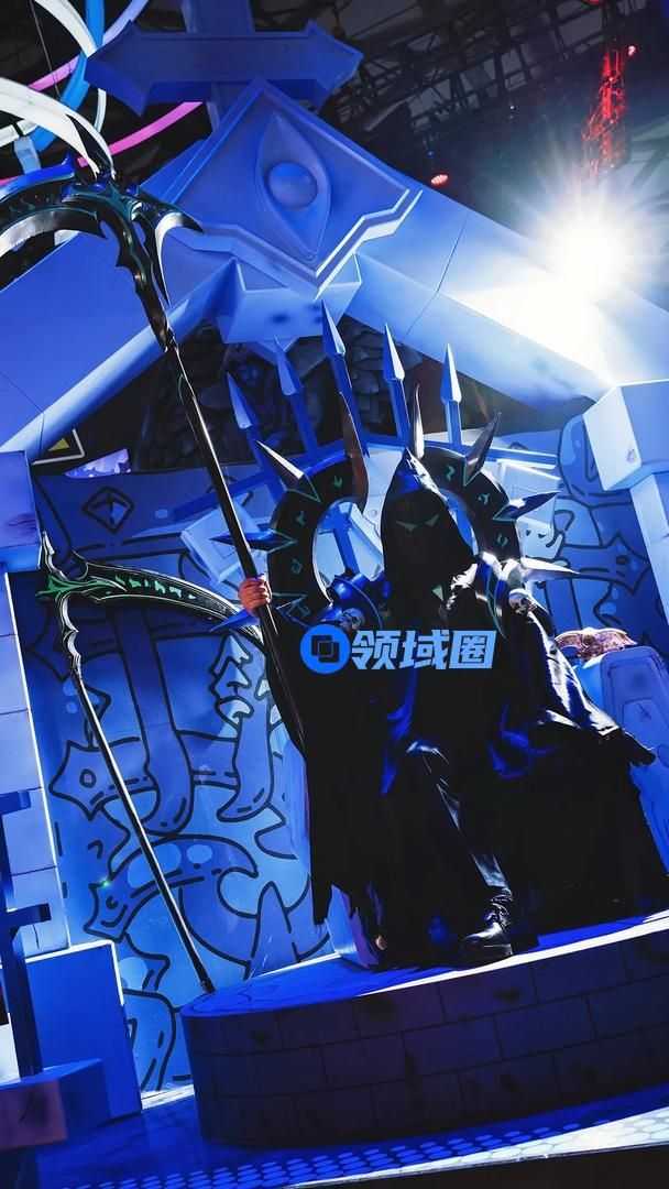 这个属于《英勇之地》的展台侧面还有一座白骨王座,是给来往玩家坐着拍照用的,还非常亲切的提供了斗篷和镰刀道具,这样即使你只是便装出行参展,也可以拥有一次非常便利的cos体验,扮演一次游戏里的“冥王”角色。