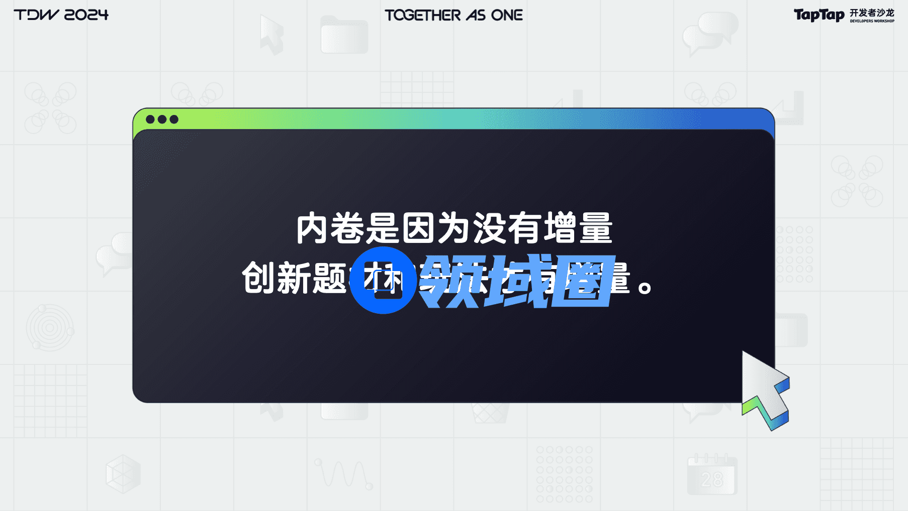 「去年,公司和行业都经历了低谷。我们坚持了下来,并在今年取得了一些成绩,希望把相关经验和教训,在 TDW 2024 与开发者进行坦诚的交流」,黄一孟表示,「我们将与开发者一起思考,如何把游戏做出题材和玩法的创新,减少内卷,带动行业做出增量价值。」