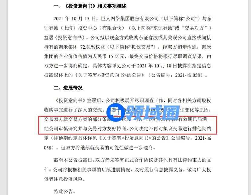 当然,虽然不再有排他,但巨人与淘米方面依旧可以继续协商交易问题,巨人依旧存在着收购淘米大部分股权的可能。