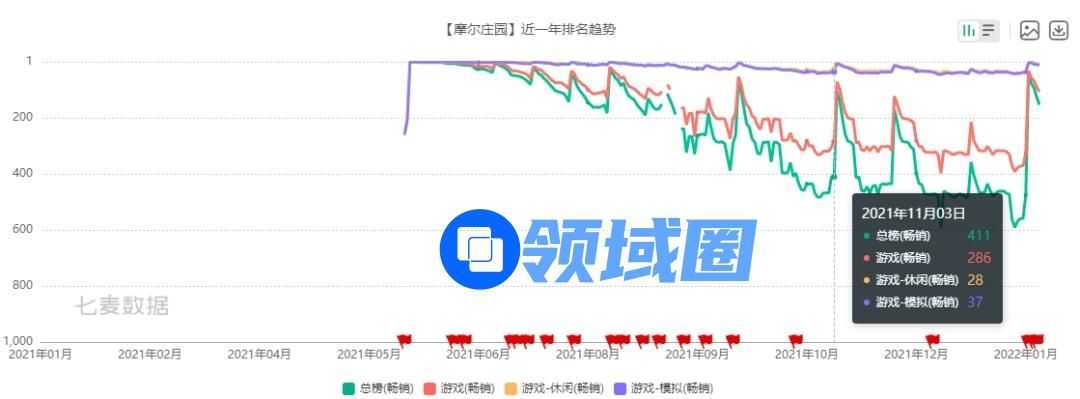 至于淘米这边,去年6月上线的由雷霆游戏发行的《摩尔庄园》手游在上线后有着非常亮眼的表现,一度成为当时的“出圈”游戏;但在上线3个月之后,《摩尔庄园》的成绩出现明显滑坡,App Store畅销榜成绩常年徘徊在Top200之外,这可能是巨人收购淘米出现变数的原因之一。