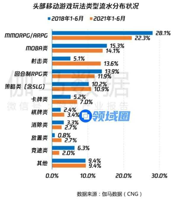 《2021年游戏产业发展趋势报告》显示:RPG和FPS依然是手游市场的“头部玩家”
