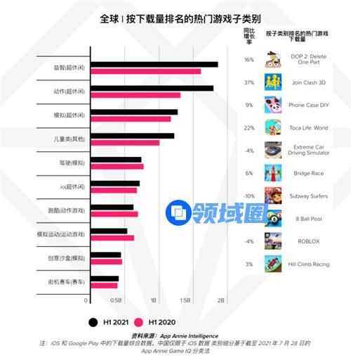 值得关注的是,据App Annie数据显示,2021年迄今全球益智休闲类的轻游戏表现十分出色,占据热门榜单第一的位置。随着移动设备的低龄化普及,越来越多的休闲类游戏为代表的轻游戏已经成为全球游戏增长新的热点。