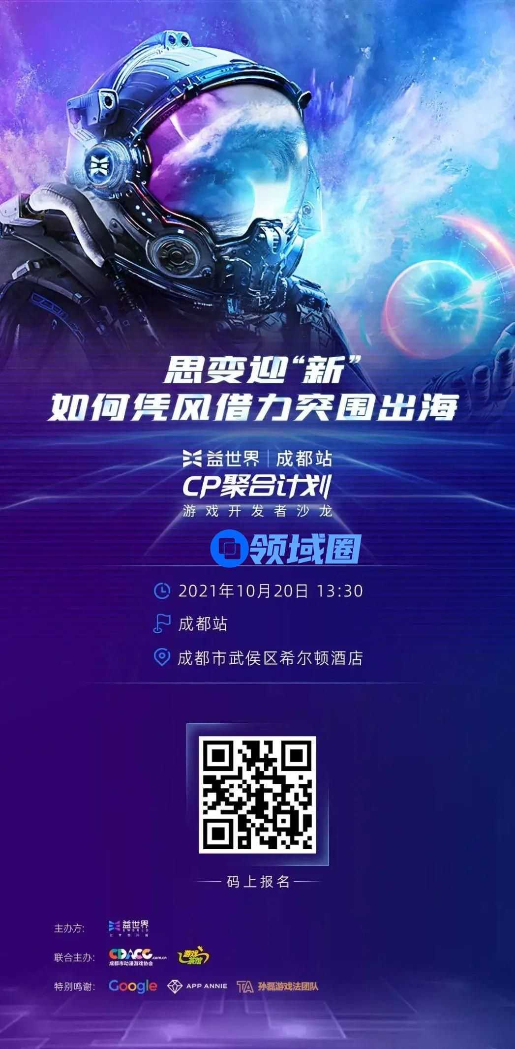 10月20日益世界CP聚合计划-游戏开发者沙龙成都站活动,以“思变迎新,如何凭风借力突围出海”为主题,邀请行业资深团队从行业趋势、数据分析、 法规要求、出海营销等角度碰撞,助力出海。