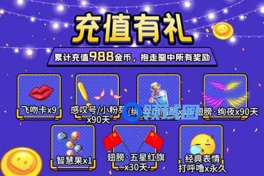 活动期间,累计充值988金币即可抱走所有奖励!