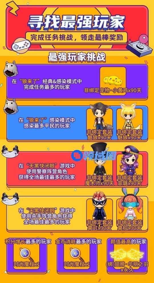 活动期间,参与《推理学院》游戏派对,完成“最强玩家大挑战”!每一种挑战都会有唯一一位玩家能够完成,并获得对应奖励!