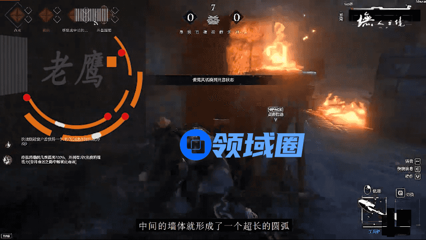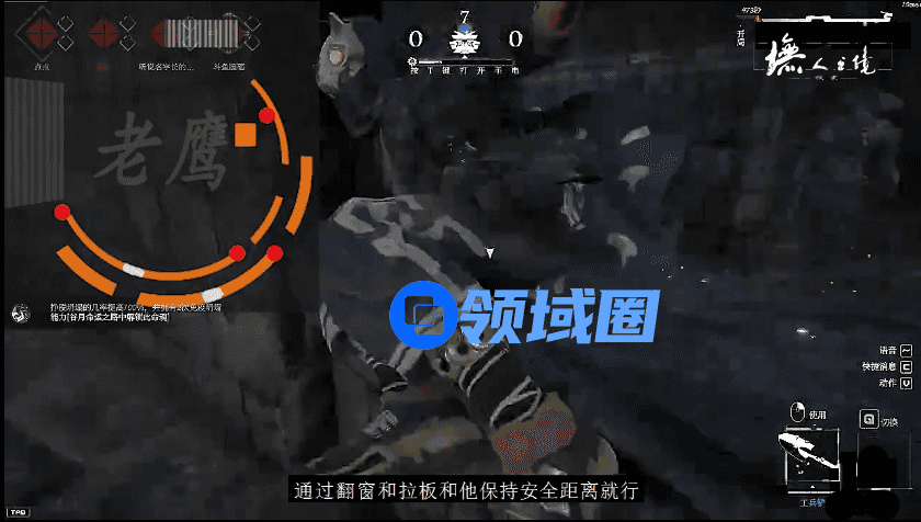 假如这一局我们出生在地图右下角的老鹰,刚修了一个两个符文,锦衣卫便来视察工作了。在老鹰溜鬼相对而言轻松一点,只需要判断好他的走向,通过翻窗和拉板,来与锦衣卫保持安全距离就行了。在这个点位,所谓的安全距离就是窗户到板子的距离。如果鬼和你的距离只有二分一的长度时,就需要通过拉板或者道具来拉开身位。