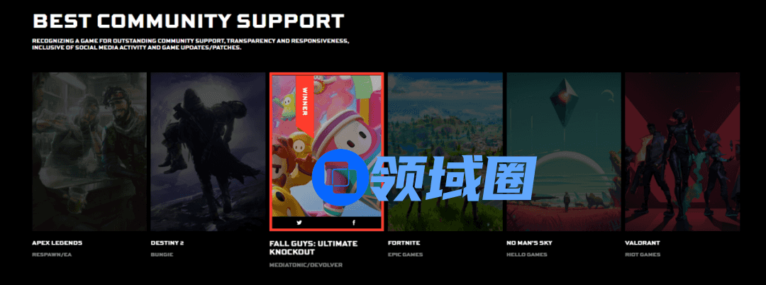 在今年号称“游戏奥斯卡”的金摇杆游戏评选活动中,《糖豆人》一举拿下“最佳家庭游戏”和“最佳多人游戏”两项大奖。而在最近刚刚结束的TGA年度颁奖典礼上,《糖豆人》凭借长久以来出色的社区运营以及孜孜不倦的游戏更新,得到了大众玩家和游戏行业的一致认可,顺利斩获“最佳社区支持奖”。同时,还受到了“最佳独立游戏”、“最佳家庭游戏”、“最佳多人游戏”三项大奖的提名。