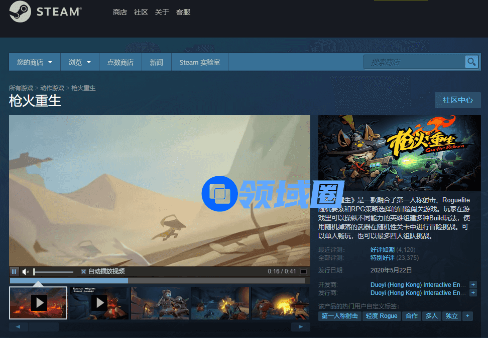 《枪火重生》最早于5月23日在Steam海外区开启抢先体验,国区上线不久就拿下了Steam商店热销榜第三,以及周销榜第七的好成绩。短短一个月,销量突破了10万,并登上周销榜前十,好评率更是达到了95%。