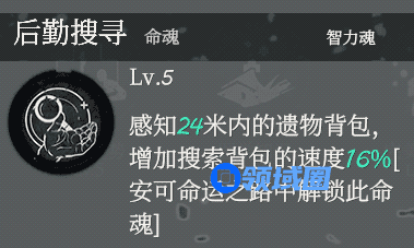 后勤搜索是感知背包并增加搜索速度的,背包中可以搜到工兵铲,烟雾弹,飞龙爪,医疗包,寻龙盘等一系列能够携带进来的道具。